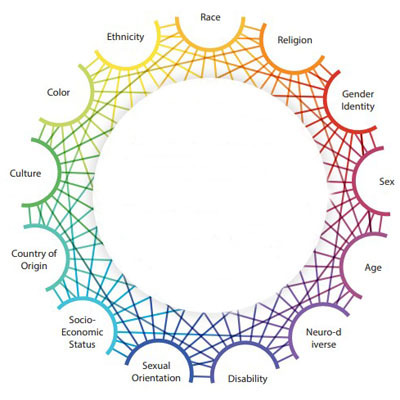 Intersectionality considers mulitple characteristics such as race, gender, sexual orientation, socio-economic status, country of origin, ability, and other individual characteristics combined to create overlapping systems of discrimination, disadvantage, and/or inequities which may shape people’s lives.
