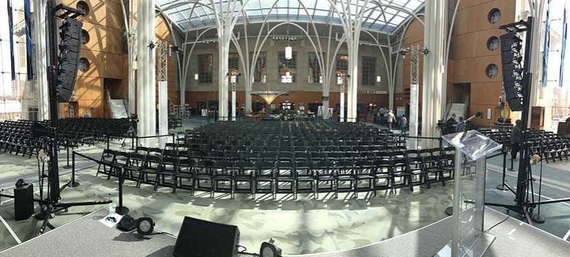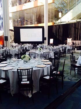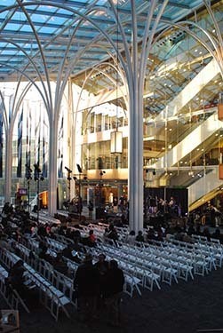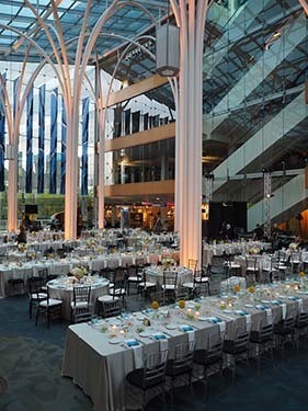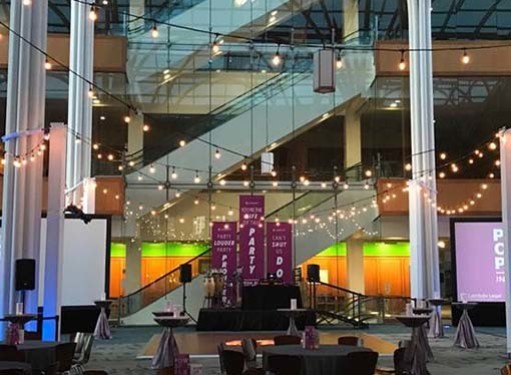 The glass-encased Atrium is the hub of the Central Library complex. It has breathtaking views that are perfect for any event. The Atrium is a public space and can only be rented outside of public hours.