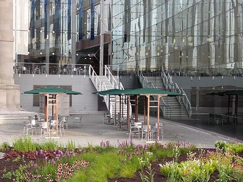 The East Garden’s oval lawn is surrounded by lush trees and flowers, making it perfect for parties and events of all kinds. The East Garden is a public space and can only be rented outside of public hours.