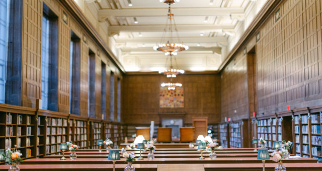 Arguably the city’s most magnificent entrance room, the Simon Reading Room is an ideal wedding space. Flanked by two marble staircases and white oak paneled walls, this space is one of the city’s finest examples of classical architecture. The Simon Reading Room is a public space and can only be rented outside of public hours