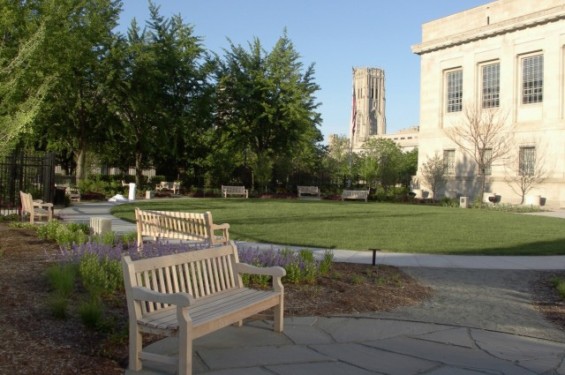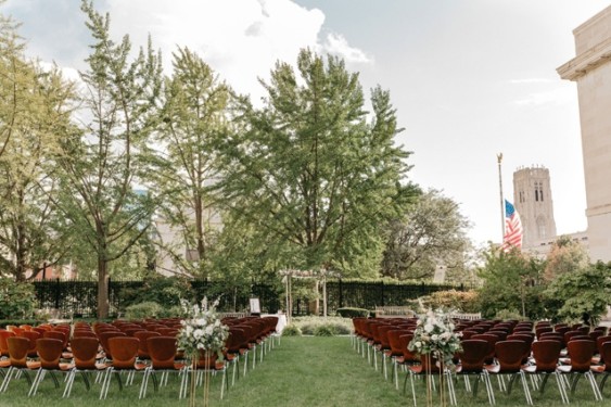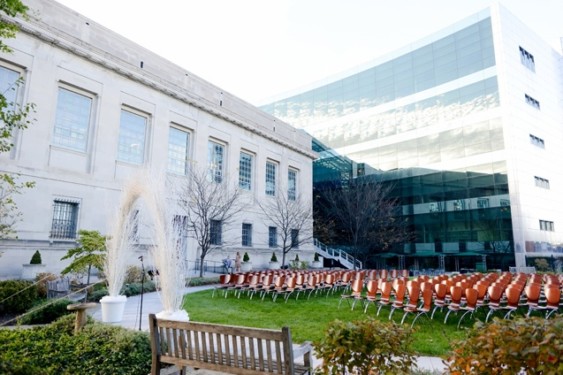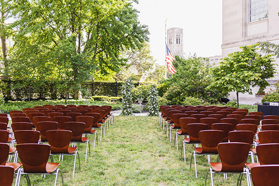 The East Garden’s oval lawn is surrounded by lush trees and flowers, making it perfect for intimate ceremonies and cocktail hours. The East Garden is a public space and can only be rented outside of public hours.