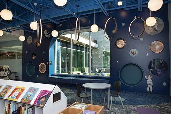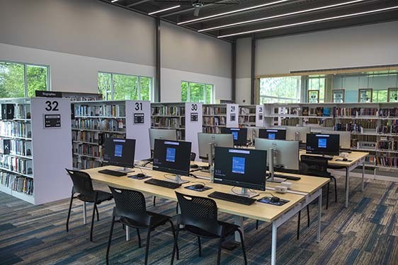 The Broad Ripple community has enjoyed library service at various sites since 1930. The first stand-alone library opened in 1949 adjacent to School No. 80 and continued at that location until a larger branch opened in Broad Ripple Park in 1986. Facing a need for continued growth, the Glendale Branch was constructed in 2000 in Glendale Mall and became the country’s first full-service library located in a major shopping mall. In 2024, a new 24,800 square-foot Branch located at the site of the former John Strange Elementary School opened. The move into this new space began the next chapter of service to the vibrant Glendale community.