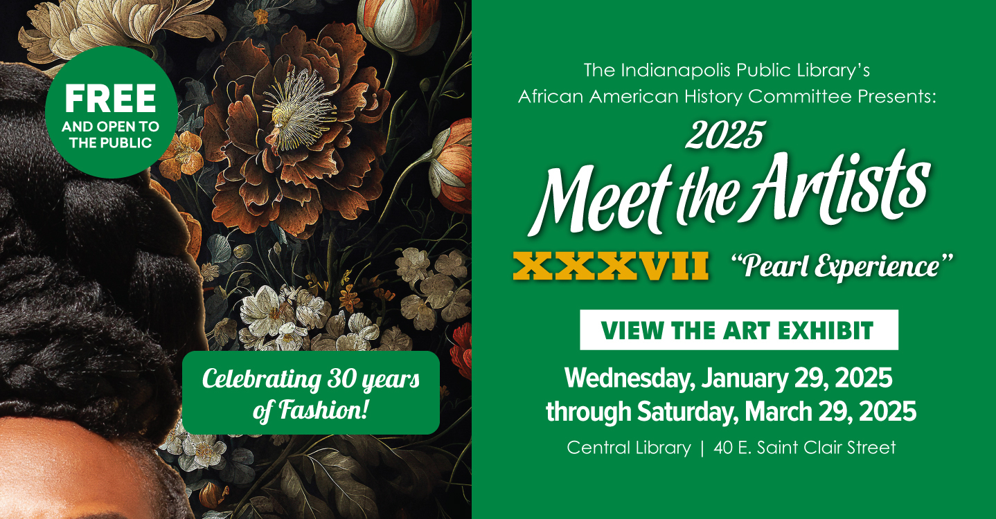 2025 Meet the Artists XXXVII the pearl experience celebrating 30 years of fashion. Free and open to the public. View the art exhibit Wednesday, January 29, 2025 through Saturday, March 29, 2025 at Central Library, 40 E. St. Clair Street.