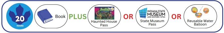 4. Earn Prizes Prizes are earned at 1 hour, 5 hours, 10 hours, 15 hours, and 20 hours of reading. When you reach the hour markers, visit any Library location to claim your prize! Prizes are subject to change and while supplies last. Claim prizes until August 2, 2025.